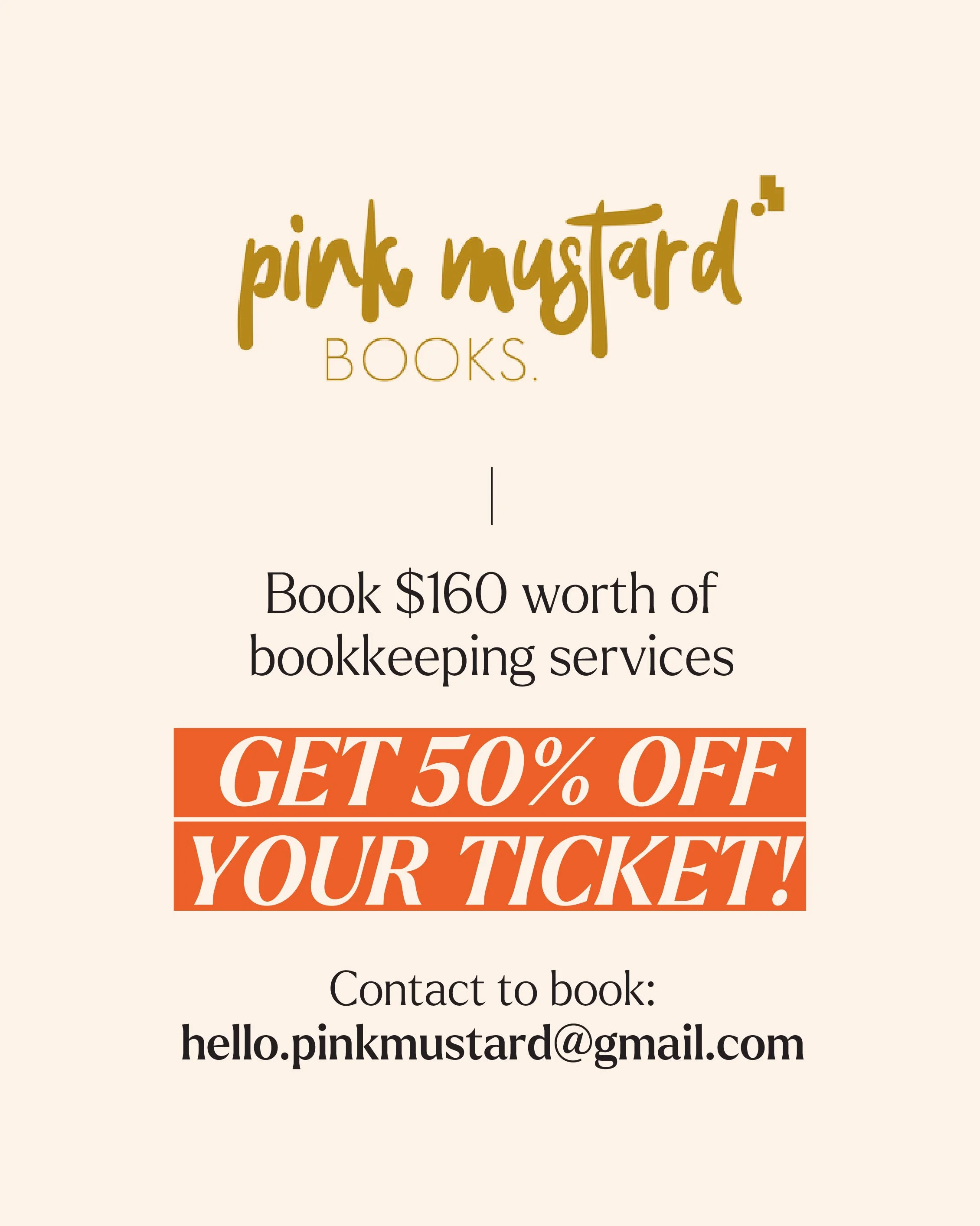 Get 50% off your event ticket when you book $160 worth of bookkeeping services with Pink Mustard Books!